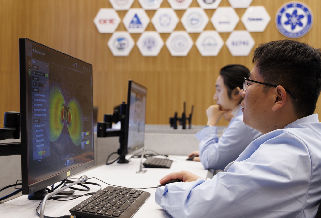 在位于北京怀柔的子午工程综合信息与运控中心ღ◈✿✿,科研人员在监测运行情况(2025年3月20日摄)ღ◈✿✿。新华社记者 金立旺 摄