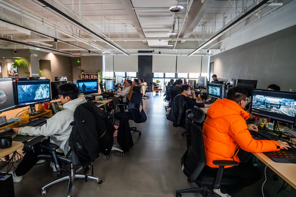 《哪吒之魔童闹海》(《哪吒2》)视觉特效制作公司墨境天合成都数字图像科技有限公司的工作区(2025年2月10日摄)ღ◈✿✿。新华社记者 薛晨 摄